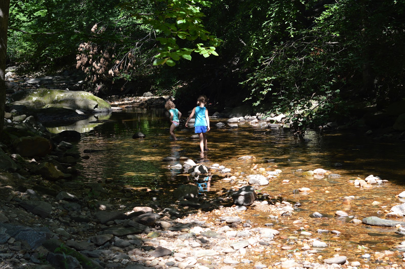 We are in an adventurous season! There's little that can't be done with a pair of waterproof shoes and a waterbottle. This morning, we visited a favorite nature center that we have visited time and time again. And even though the nature center is pretty fun, we never get far past the creek, where we can play for hours. Hugo kept me company in the backpack this time around. And Lily seemed to think it was important to keep her shorts pulled up anytime she was close to the water. Seems like a good idea, no? Zosia is our nature guide in training, telling us all about animals and plants all around us. I think we will have to go back next time with bathing suits. Isn't nature the best playground?